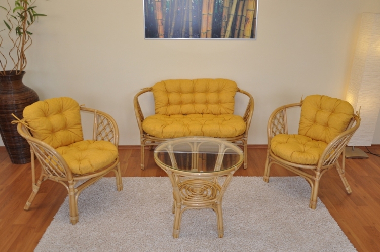 z prírodného ratanu s farbou konštrukcie v medovom odtieni. Súprava