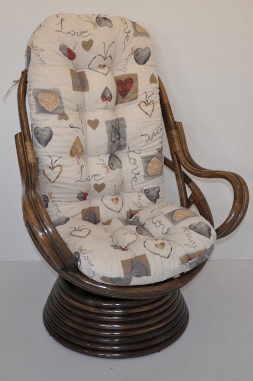 Ratanové hojdacie kreslo Swivel hnedé polster motív srdca LOVE