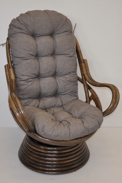 Ratanové hojdacie kreslo Swivel hnedé polster šedý melír