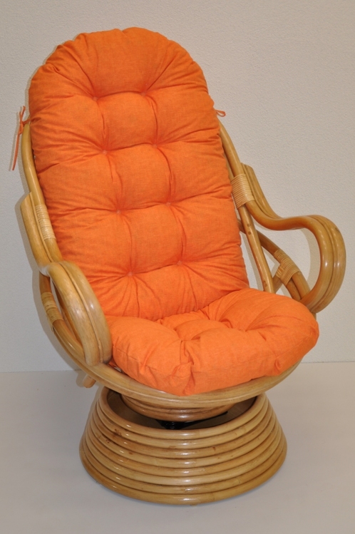 Ratanové hojdacie kreslo Swivel medové polster oranžový melír