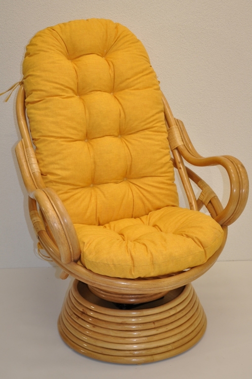 Ratanové hojdacie kreslo Swivel medové polster žltý melír