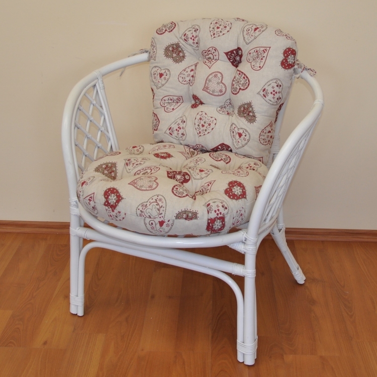 Ratanové kreslo Bahama biele polster motív červené srdce