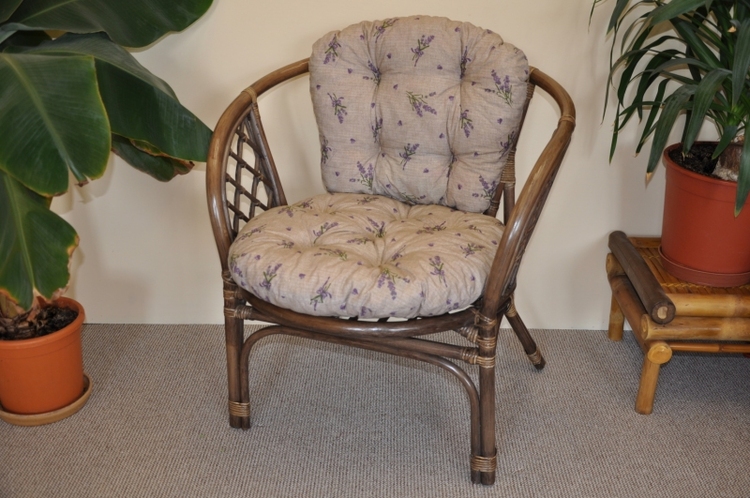 Ratanové kreslo Bahama hnedé polster levandule