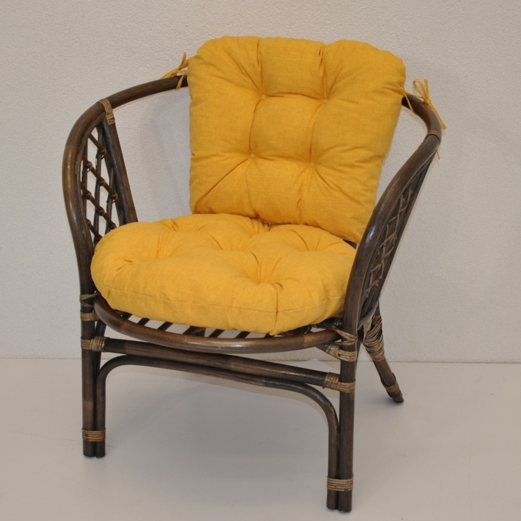 Ratanové kreslo Bahama hnedé polster žltý melír
