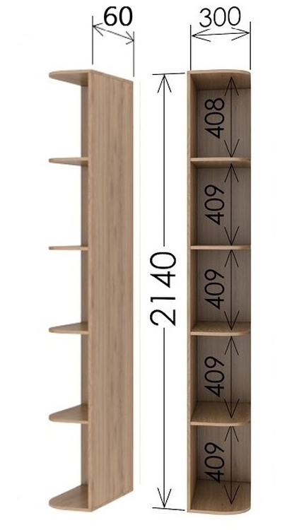 Praktický rohový regál ku skrini. Nezvyčajná výška Vám ponúkne väčší úložný priestor. Korpus je z kvalitnej LTD dosky vo farbe dub kraft zlatý. Dodávame v demontovanom stave.CASA 83047