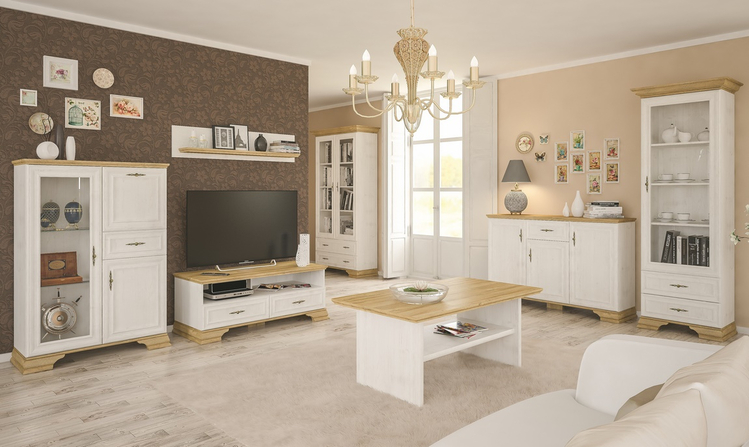 Vysoký regál s policami zo sektorového radu nábytku v romantickom štýle. Nábytok je vyrobený z kvalitnej LTD v kombinácii s MDF vo farebnej kombinácii borovice andersen/zlatý dub. V našej ponuke nájdete ďalšie jednotlivé prvky tohto nábytku, z ktorého si môžete zariadiť obývaciu izbu podľa... více informací o zboží