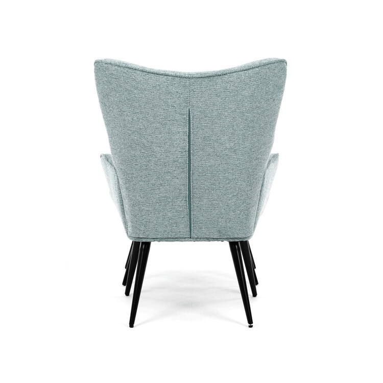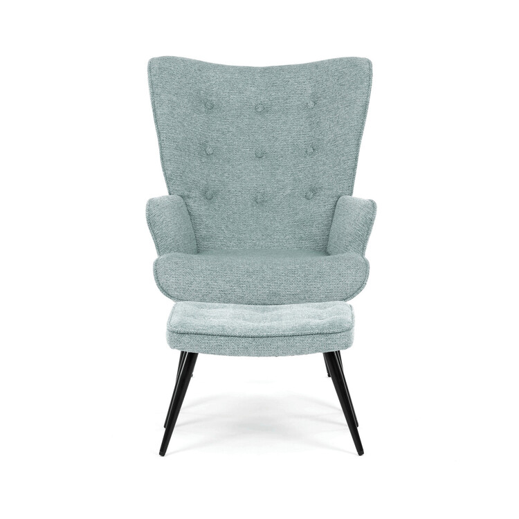 Relaxačné kreslo s podnožkou v modrej farbe je potiahnuté vodoodpudivou prémiovou látkou, ktorá uľahčuje údržbu a zvyšuje odolnosť voči poliatiu. Pevné čierne kovové nohy zaisťujú stabilitu a dlhú životnosť. Kreslo ponúka pohodlné operadlo s integrovanými podrúčkami, ktoré podporujú správnu ergonómiu pri relaxácii. Bonusový taburet so zodpovedajúcim čalúnením umožňuje pohodlné opretie nôh a dopĺňa celkový komfort. Dizajn s jemným prešitím a mierne zaoblenými tvarmi vytvára príjemný vizuálny efekt vhodný do moderných aj klasických interiérov. Taburet je o šírke 48cm, hĺbke 38cm a výške 36cm.