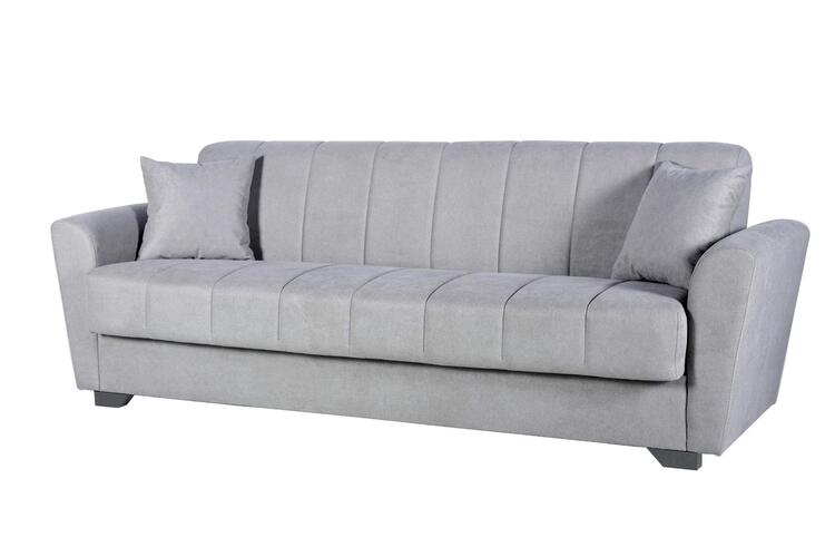 Praktická rozkladacia pohovka s funkciou úložného priestoru a možnosťou rozloženia na spaciu plochu 190 × 103 cm .