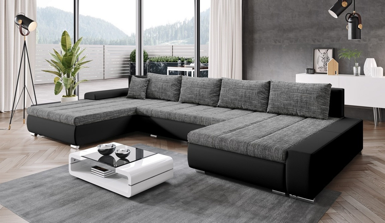 Praktická priestranná celočalúnená rohová sedačka do tvaru U v modernom prevedení. Sedačka obsahuje úložný priestor a priestor na príležitostní spanie. Po rozložení je spacie plocha 367 x 150 cm. Rozklad je ľahký, vysunie sa vozík s matracom do prednej časti. Pohodlné sedenie zaručujú vlnovcové pružiny spolu s PUR penou (T30). Výška sedu je 40 cm, hĺbka sedu 71 cm, výška sedačky bez vankúšov 73 cm. Nôžky sú kovové pochrómované. Farebné prevedenie - korpus je vyrobený z ekokože Madryt 1100, sedacia časť a oporné vankúše sú z látky Berlin 01.CASA 41039