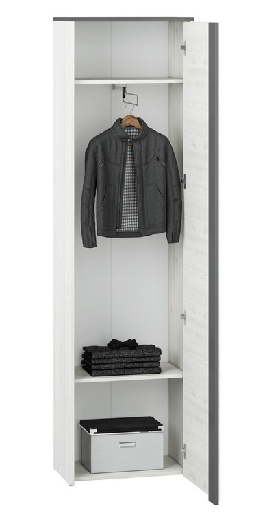 Šatníková skriňa je vyrobená z dosky LTD v kombinácii farieb borovice snežná/antracit. Dvierka je možné namontovať na pravú alebo ľavú stranu. Dodávame v demontovanom stave.CASA 56015 více informací o zboží