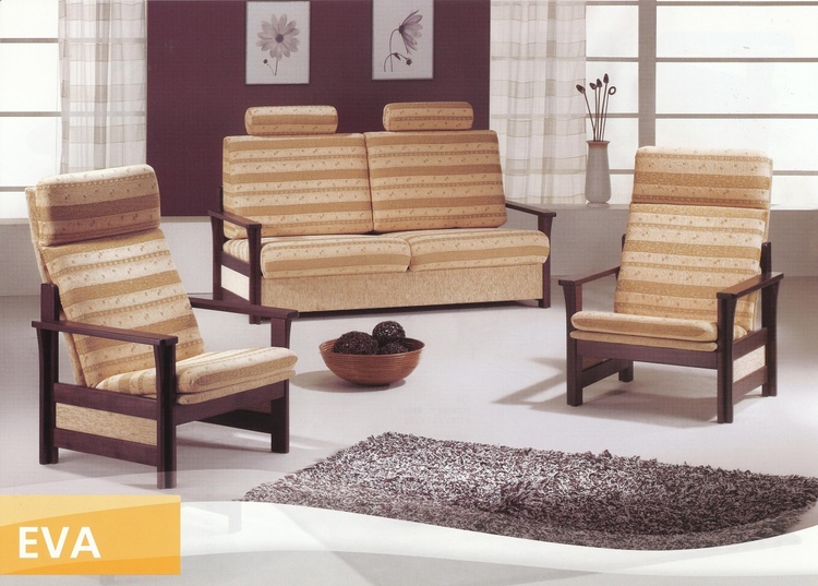 Moderná sedacia súprava vyrábaná v kombinácii masívneho bukového dreva a čalúnených prvkov. Pri rozložení vznikne jedno alebo dve pohodlná lôžka, podhlavník má dve polohy, kedy si môžete nastaviť mierny sklon alebo úplnú rovinu ležanie. Na oboch sedacích súpravách možno vsunúť za operadlo vyvýšené vankúšiky pre zvýšeníkomfortu sedenie. Táto sedacia súprava je vďaka svojim rozmerom vhodná aj do menších bytov. Cena je za zostavu E2R + 1 + 1 = pohovka rozkladacia, kreslo, kreslo. Opierka hlavy nie je súčasťou ceny, cena za kus činí podľa poťahové látky 930-1130 Sk. Požiadavka na objednanie vrátane počtu kusov napíšte do poznámky v objednávke. Výber látky a morenia podľa vzorkovníka. V prípade požiadavky na kombináciu látok, napíšte druhú látku do poznámky v objednávke vrátane opisu ako čalounit, systém vám umožní výber len jednej poťahové látky. V cene nie je rozkladací diel (ktorý nie je v zloženom stave vidieť) u pohovky čalúnený originálnou látkou, čalúnenie originálnou látkou (pozri foto) je za príplatok. Zákazková výroba, nie je vedené skladom.