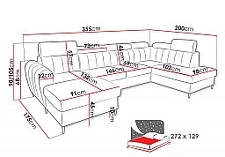 voľbou pre priestranné obývacie izby . T21 a tapetárske pásy Funkcia spania: áno, s mechanizmom typu Delfín Polohovateľné opierky hlavy: áno Orientácia rohu: ľavá alebo pravá varianta (nutné špecifikovať pri objednávke) Poťahová látka: dostupná v niekoľkých odtieňoch Nohy: kovové, čierne Zadná časť: čalúnená, vhodná pre umiestnenie do priestoru pohodlie, funkčnosti a priestranného designu Vďaka možnosti rozloženia na lôžko a úložnému priestoru je praktickým riešením pre každodenné použitie aj pre hostí.