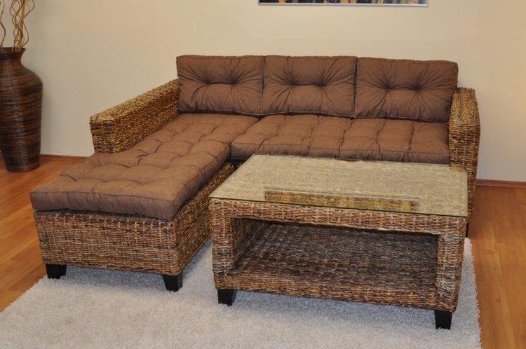 | Konštrukcia sedacej súpravy je vyrobená z masívneho mahagónového dreva, výplet je tvorený banánovým listom v prírodnej farbe.