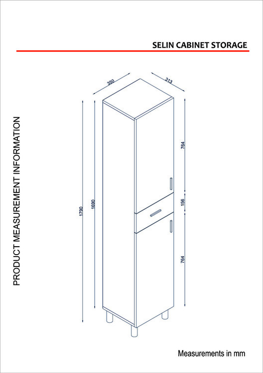 Selín úzka kúpeľňová skriňa, biela