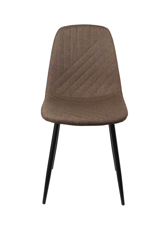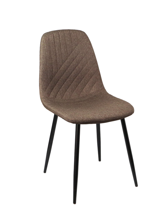 Celočalúnená jedálenská stolička s prešívaním. Kovová podnož.