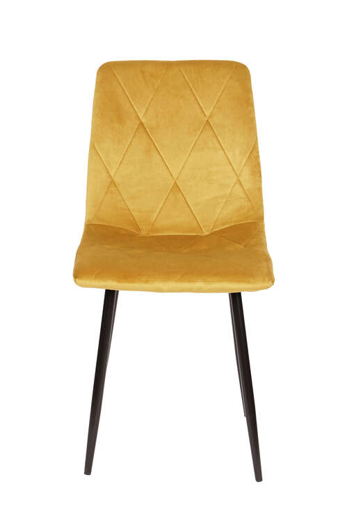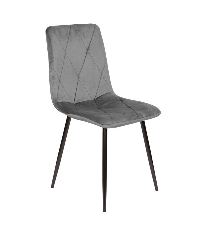 Čalúnená stolička s kovovou, čiernou podnožou. Materiál poťahu je moderný a príjemný "Velvet." Dodávané v demnote.
