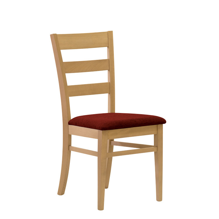 Jedálenská stolička s čalúneným sedákom. Novinka 2018 - ponúkame 5 základných odtieňov morenia a látky genézu, alebo výber z 78 zákazkových látok. více informací o zboží