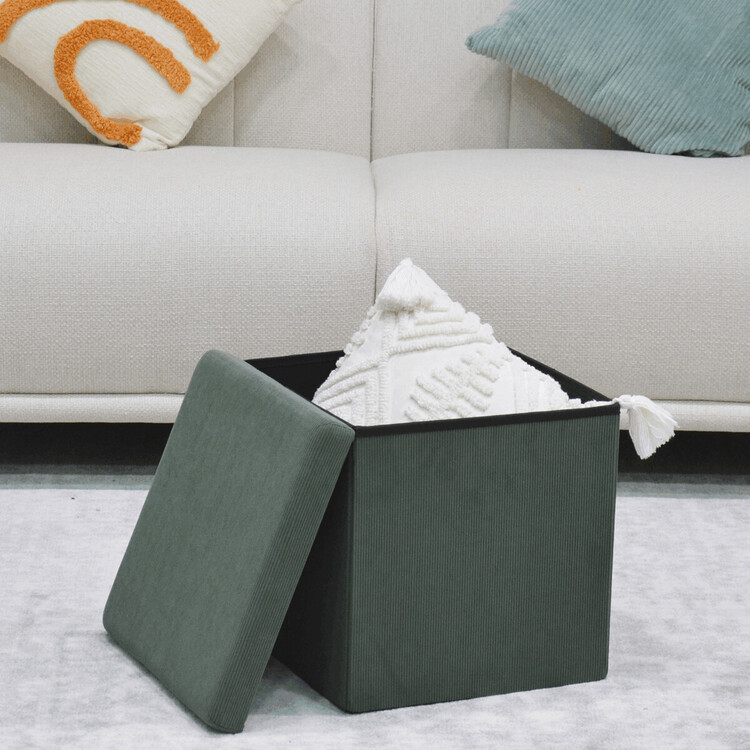 TAB-471 GRN6 - Taburet s úložným priestorom, zelená menčestrová látka