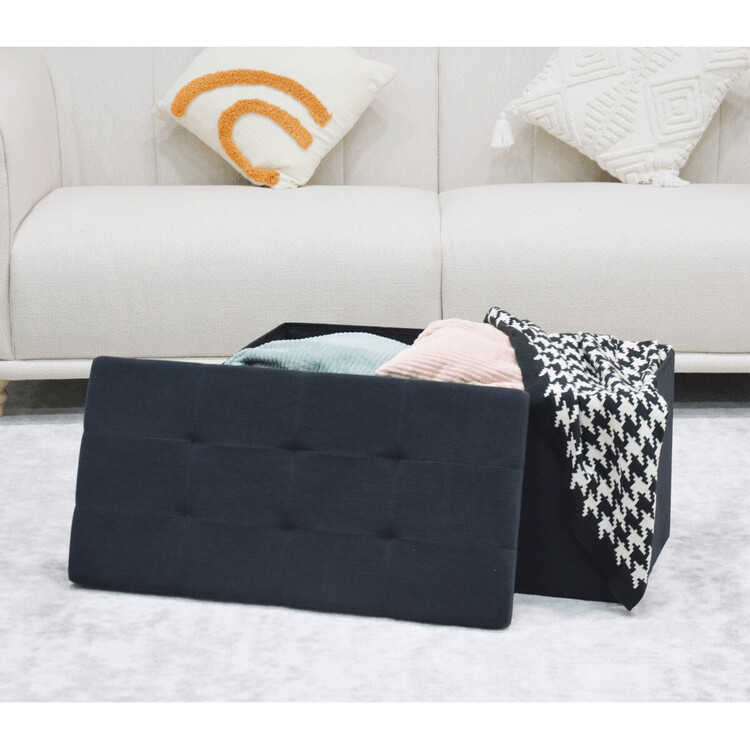 TAB-472 BK6 - Taburet s úložným priestorom, čierna menčestrová látka