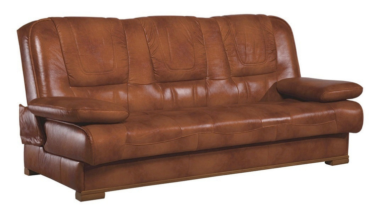Elegantný rozkladací trojsedák, ktorý svojím vzhľadom zaručuje luxus a pohodlie. Plocha po rozložení je 120 x 200 cm. Tento trojsedák vyrába značkový výrobca, ktorý si potrpí na kvalite a detailoch. Trojsedák obsahuje praktický úložný priestor a je vyrobený z najkvalitnejšej pravej kože lícovej. Zadná strana je potiahnutá čiernou látkou, za príplatok je možné zabezpečiť sedačku celo-čalúnenou. Nohy sú vyrobené z masívneho dubového dreva s morením. Hĺbka sedu u pohovky je 53 cm, výška sedu 41 cm. Kožený nábytok je nutné čistiť iba za pomocou špeciálnych prostriedkov na čistenie a konzerváciu prírodných kožou, drevo je potrebné čistiť suchou mäkkou handričkou, je možné tiež používať prostriedky na konzerváciu a ochranu dreva neobsahujúce silikón. Tento trojsedák môžete doplniť o kreslo. Farebné prevedenie - pravá koža S42 a drevo rustikal (viď obrázok).