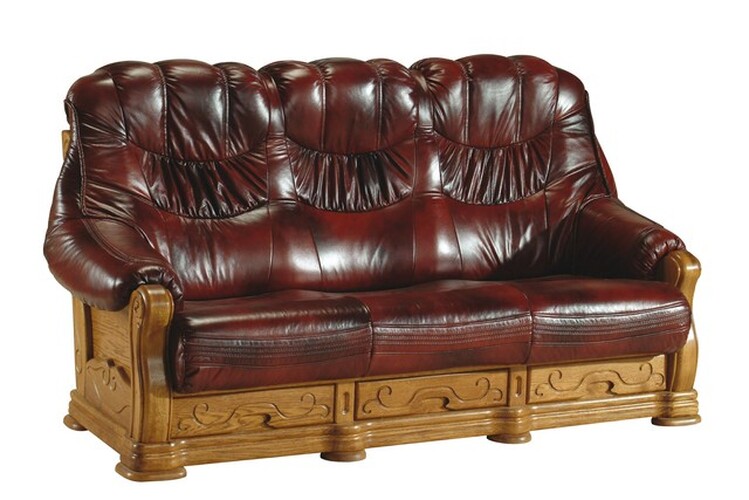 Elegantný trojsedák, ktorý svojim vzhľadom a prevedením zaru? Uje luxus a pohodlie. Výška sedu je 45 cm a hĺbka sedu je 52 cm. Tento trojsedák vyrába zna? Kový výrobca, ktorý si potrpí na kvalít? a detailoch. Trojsedák je vyrobený z nejkvalitn? Nejšie pravej k? Že - lícovej so širokým výber? Rem farieb. Zadná strana je potiahnutá? Iernu látkou, za p? Íplatek možno zabezpečiť seda? Ku celo? ALÚNENÉ? Nú. Nohy sú vyrobené z masívneho dubového d? Eva s výber? Rom mo? Enie. Kožený nábytok je nutné? Isti iba za pomocou špeciálnych prost? EDK? na? istenia a konzerváciu p? prírodných k? ží, d? evo je t? eba? isti suchým m? mäkkou had? kou, je možné tiež používať prost? edky na konzerváciu a ochranu d? eva neobsahujúce silikón. Tento trojsedák m? Môžete doplniť o dvojsedák a k kreslo. Ponúkame aj výber? R ďalších poťahových látok.