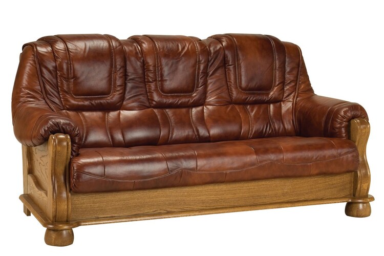 Elegantný trojsedák, ktorý svojim vzhľadom a prevedením zaru? Uje luxus a pohodlie. Tento trojsedák vyrába zna? Kový výrobca, ktorý si potrpí na kvalít? a detailoch. Trojsedák je vyrobený z nejkvalitn? Nejšie pravej k? Že - lícovej so širokým výber? Rem farieb. Zadná strana je potiahnutá? Iernu látkou, za p? Íplatek možno zabezpečiť seda? Ku celo? ALÚNENÉ? Nú. Nohy sú vyrobené z masívneho dubového d? Eva s výber? Rom mo? Enie. Kožený nábytok je nutné? Isti iba za pomocou špeciálnych prost? EDK? na? istenia a konzerváciu p? prírodných k? ží, d? evo je t? eba? isti suchým m? mäkkou had? kou, je možné tiež používať prost? edky na konzerváciu a ochranu d? eva neobsahujúce silikón. Tento trojsedák m? Môžete doplniť o dvojsedák a k kreslo. Taktiež ponúkame aj ďalšie poťahové látky.