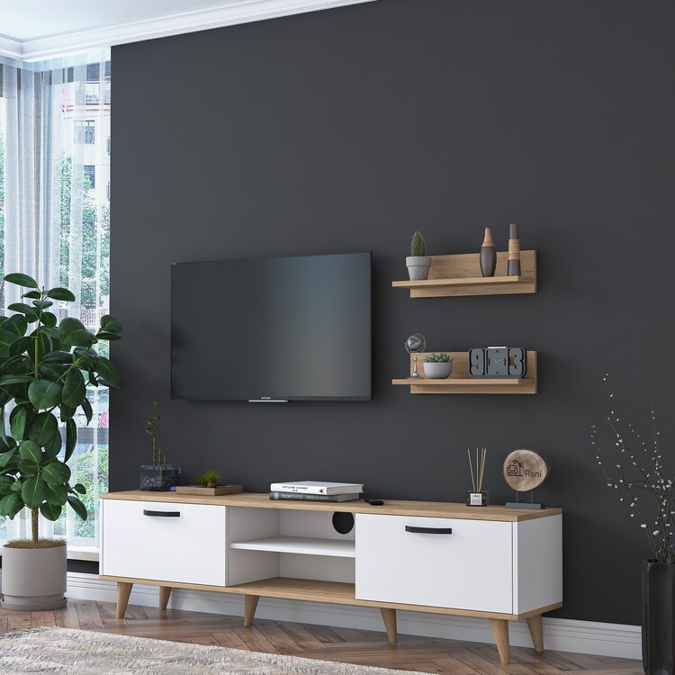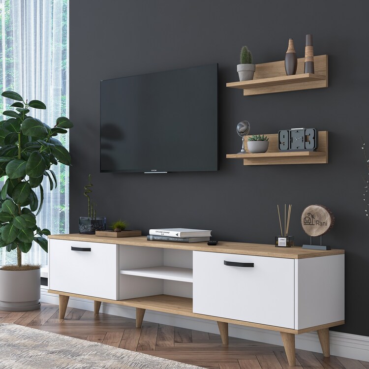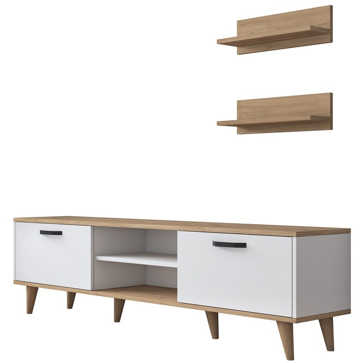 Obývacia stena je perfektným riešením pre každú modernú obývaciu izbu. Kombinácia bielej farby a dekoru orecha dodáva interiéru sofistikovaný a útulný vzhľad. S praktickým usporiadaním ponúka dostatok priestoru pre multimediálne zariadenia aj dekorácie.