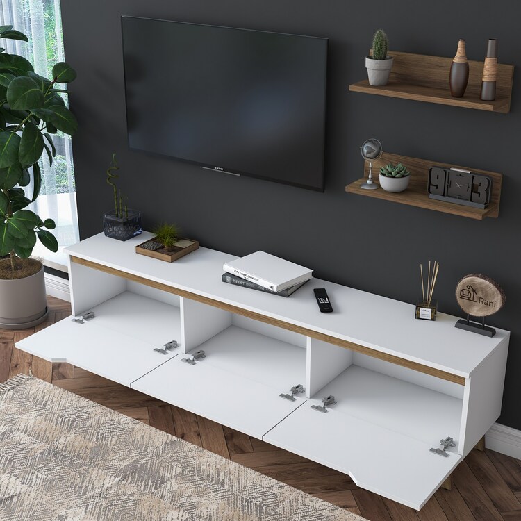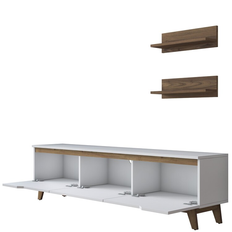 Obývacia stena je štýlové a funkčné riešenie pre vašu obývaciu izbu. Vďaka modernej kombinácii bielej farby a dekoru orecha sa ľahko stane dominantou vášho interiéru. Poskytuje praktický úložný priestor a pritom dodáva miestnosti ľahkosť a eleganciu.