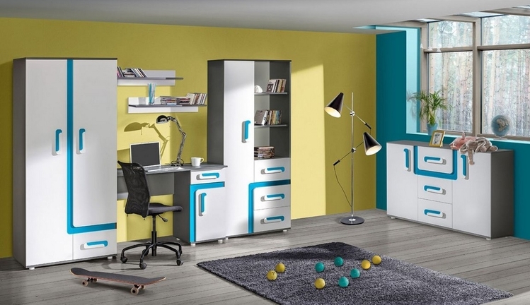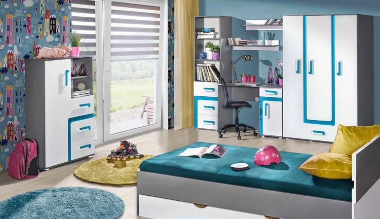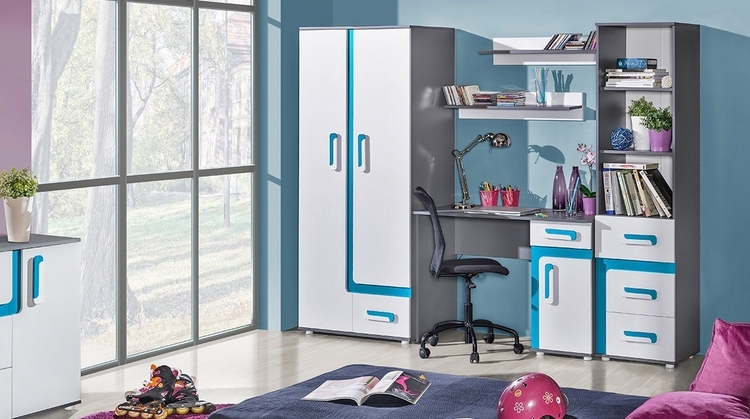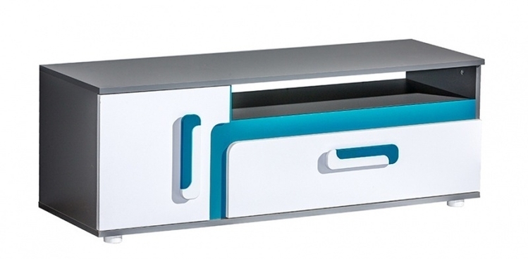 Televízny stolík APETTITA zo sektorového radu, ktorý sa vyznačuje netradičným spracovaním farieb a originalitou úchytov. Tento štýl nábytku zaujme každú mladšiu generáciu. Nábytok je vyrobený z kvalitnej LTD dosky hranenej ABS lištou. Korpus je vo farbe šedá antracit, dvierka a čelá zásuviek sú biele matné, doplnková farba je tyrkys. Úchytky sú vo farebnej kombinácii tyrkys/biela. Sektorový nábytok APETTITA má široký výber prvkov, ktorý Vám zaručí zostaviť si detskú alebo študentskú izbu, spálňu či kanceláriu podľa svojich potrieb, prianí a predstáv. Dodávame v demontovanom stave.CASA 23001