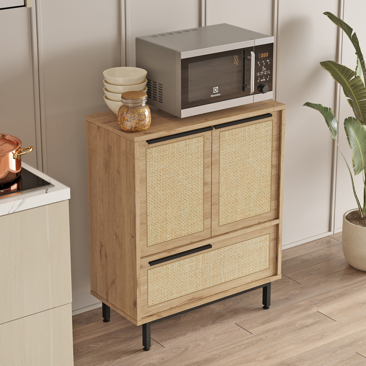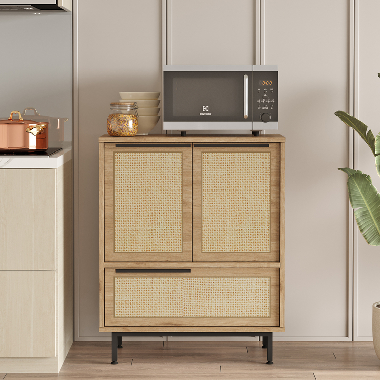 spája funkčnosť a moderný design. Vďaka trom plným dvierkam poskytuje dostatok úložného priestoru na organizáciu predmetov, ako sú knihy, dokumenty, dekorácie alebo ďalšie nevyhnutnosti. Kompaktné rozmery a viacúčelový vzhľad umožňujú ľahké umiestnenie do akéhokoľvek interiéru.