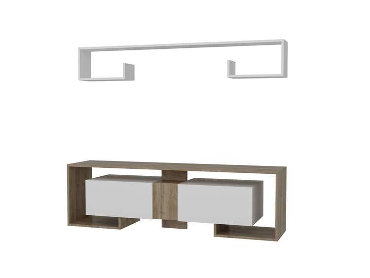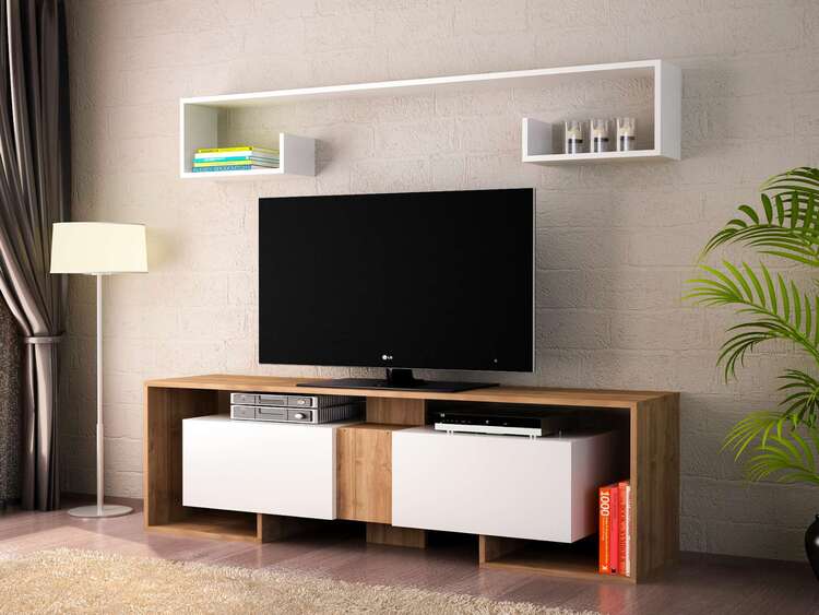 Predstavujeme obývaciu stenu, ktorá kombinuje eleganciu a funkčnosť, aby priniesla do vašej obývačky moderný a štýlový dizajn. Táto zostava v kombinácii bielej a orechovej farby je navrhnutá tak, aby poskytovala praktické a estetické riešenie pre vaše multimediálne zariadenia a ďalšie potreby.