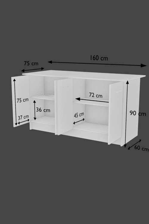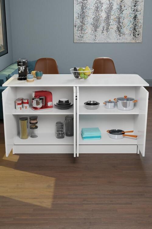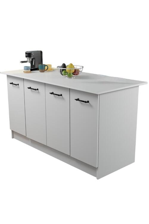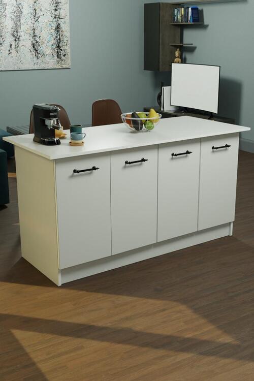 Ostrovček disponuje 4 dvierkami, za ktorými sa nachádza 2 x 1 priestranná polica. Vyrobený z kvalitnej drevotriesky potiahnutej melamínom.