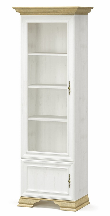 Vitrína zo sektorového radu nábytku v romantickom štýle. Nábytok je vyrobený z kvalitnej LTD v kombinácii s MDF vo farebnej kombinácii borovice andersen/zlatý dub. V našej ponuke nájdete ďalšie jednotlivé prvky tohto nábytku, z ktorého si môžete zariadiť obývaciu izbu podľa vlastných potrieb. Dodávame v demontovanom stave.CASA 97011