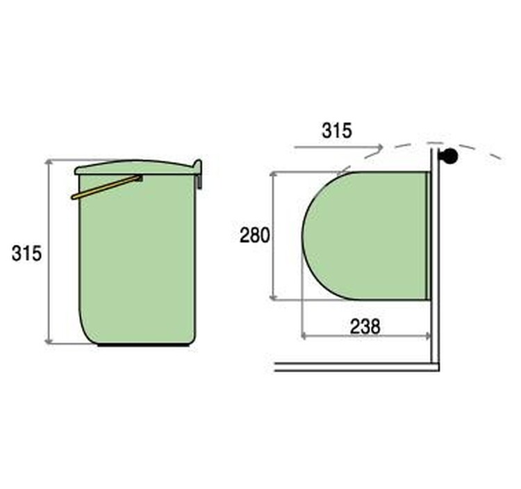 Vstavaný odpadkový kôš 210 je vstavaný kôš na odpadky s objemom 12 litrov určený na montáž na dvierka skrinky. Veko sa otvára ručne. Vstavaný kôš je vyrobený z plastu. Montáž je veľmi jednoduchá.