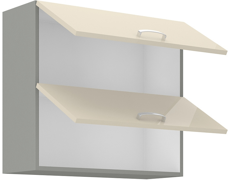 Horná výklopná sk? Í? Ka dvojitá KARMEN vyrobená z kvalitného lamina a MDF. Korpus je vo farbe? šedá a dvoje? ka vo farbe? karmen krémová v lesku. Rozm? Ry sk? Í? Ky - šíri? Ka 80 cm, výška 71,5 cm, hĺbka 31 cm. Úchyty sú z kovu. Dvoje? Ka sú pomocou plynových piest? otvárané nahor. V našej ponuke nájdete ďalšie výber? R cz? Číne? Kk zostavenie celej kuchyn ?.