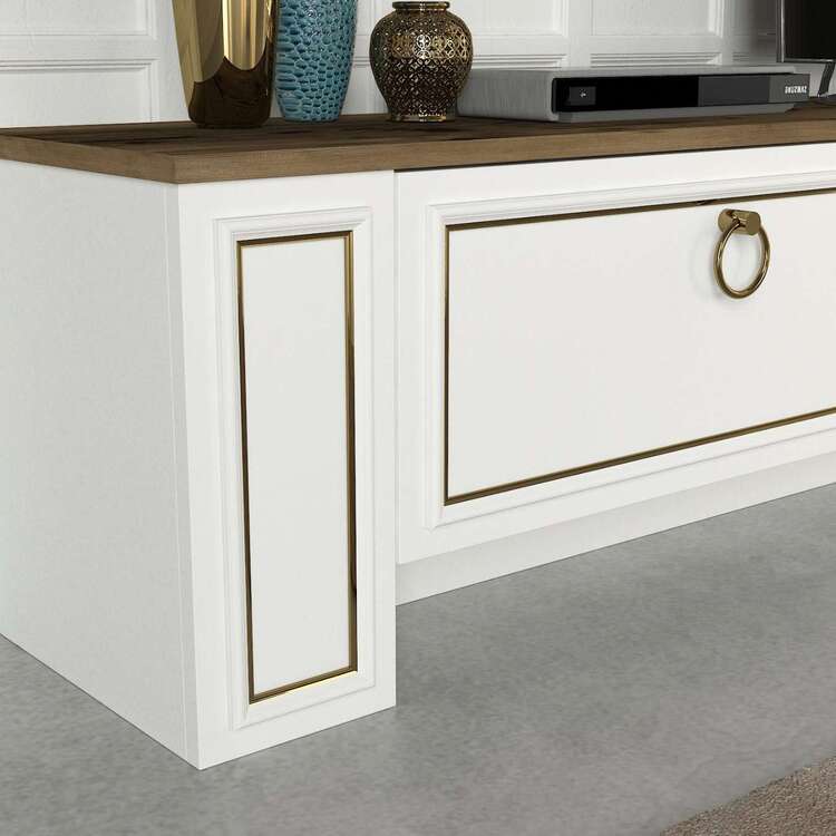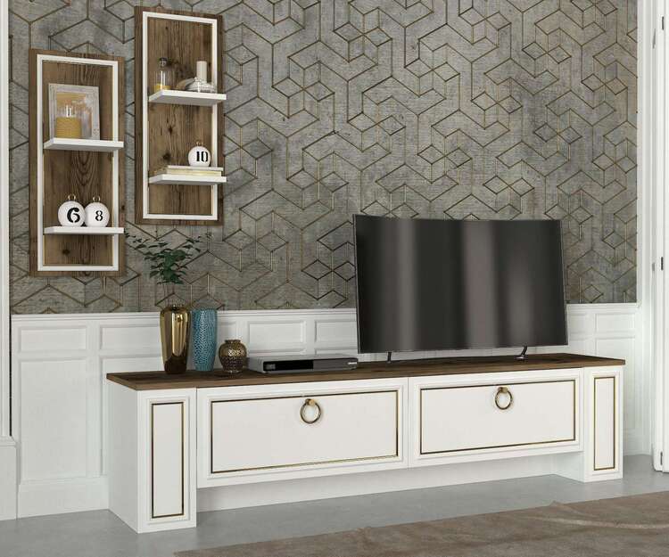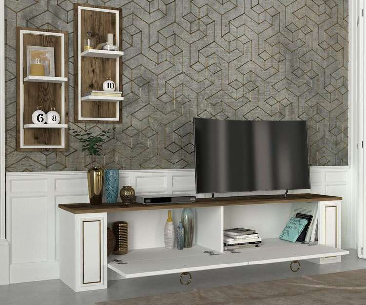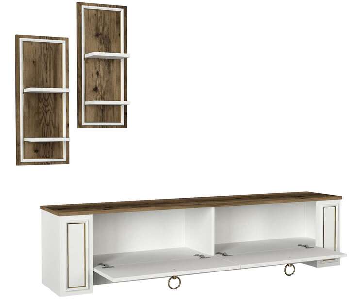 Objavte obývaciu stenu, ktorá spája moderný dizajn a praktické riešenie pre vašu obývaciu izbu. Táto zostava v kombinácii bielej a orechovej farby prináša svieži a zároveň teplý vzhľad, ktorý osloví každého, kto hľadá štýl a funkčnosť.