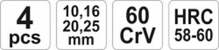 YATO YT-6260 Náradie Praktická sada 4ks dlát. Zhotovenie čepele nástrojov z kvalitnej ocele CrV60 s tvrdosťou HRC 58-60. Jednotlivé nástroje majú odstup...