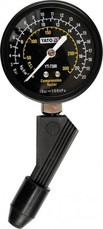 Prístroj na meranie kompresného tlaku max tlak21 Barspalovacích motorov Zariadenie sa umiestni namiesto zapaľovacej sviečky motora a určí sa tlak pre daný valec Zariadenie je vhodné pre diagnostiku a mechanický stav motora Konkurenčné objednávacie čísla YT-7300 YATO YT-7300 Náradie YATO