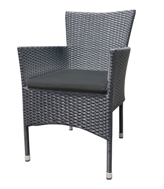 Záhradné kreslo z umelého ratanu. Vďaka voľbe materiálu je kreslo ľahko umývateľné a jeho údržba nie je nijako náročná. Rozmery kresla sú ( Š x V x H cm ) - 57 × 87 × 62 cm. Výška sedu je 42 cm. Ako bonus zadarmo dodávame vrátane sedadla čiernej farby, rozmer 46 × 47 × 3 cm (poťah snímateľný prateľný). Konštrukcia je kovová obalená kvalitným plastom pripomínajúcim ratan. Farebné prevedenie - antracit.