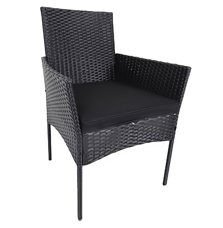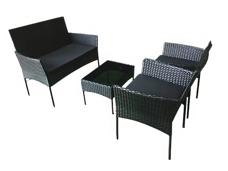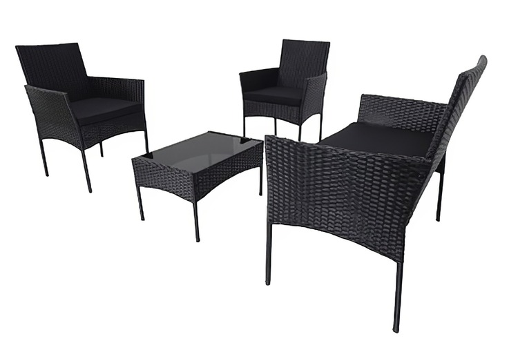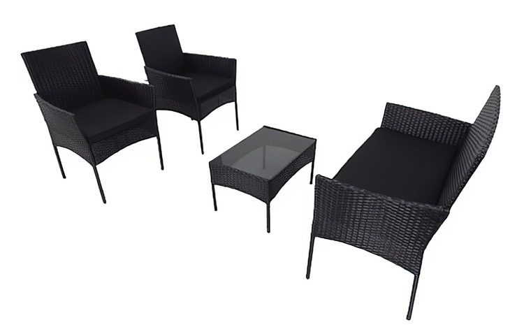Záhradná zostava 1 dvojsedáku, 2 kresiel a 1 stola z umelého ratanu. Vďaka voľbe materiálu sú kreslá ľahko umývateľné a údržba nie je nijako náročná. Dodávame vrátane sedákov vo farbe čiernej, výška 5 cm. Konštrukcia je kovová obalená kvalitným plastom pripomínajúcim ratan. Rozmer dvojsedáka je (Š x V x H cm) – 100 x 84 x 57 cm a rozmer kresla je (Š x V x H cm) – 57 x 84 x 57 cm. Výška sedu so sedákom je cca 46 cm. Konferenčný stolík s čiernym tvrdeným sklom s rozmermi (Š x V x H cm) 60 x 35 x 40 cm je súčasťou zostavy. Farebné prevedenie - čierna. Dodávame v demontovanom stave.CASA 95207