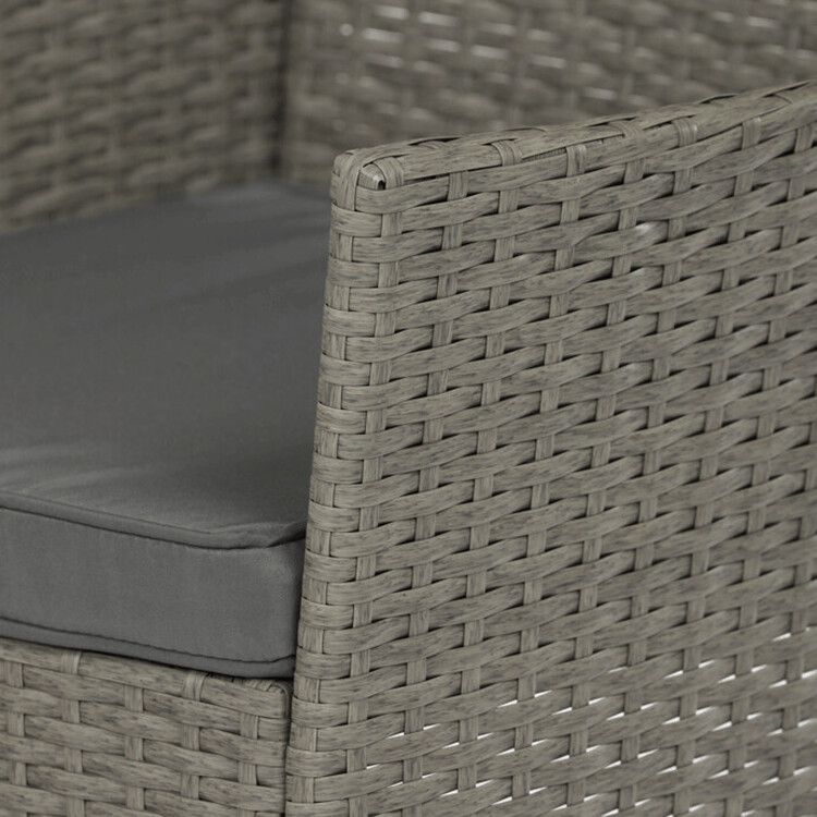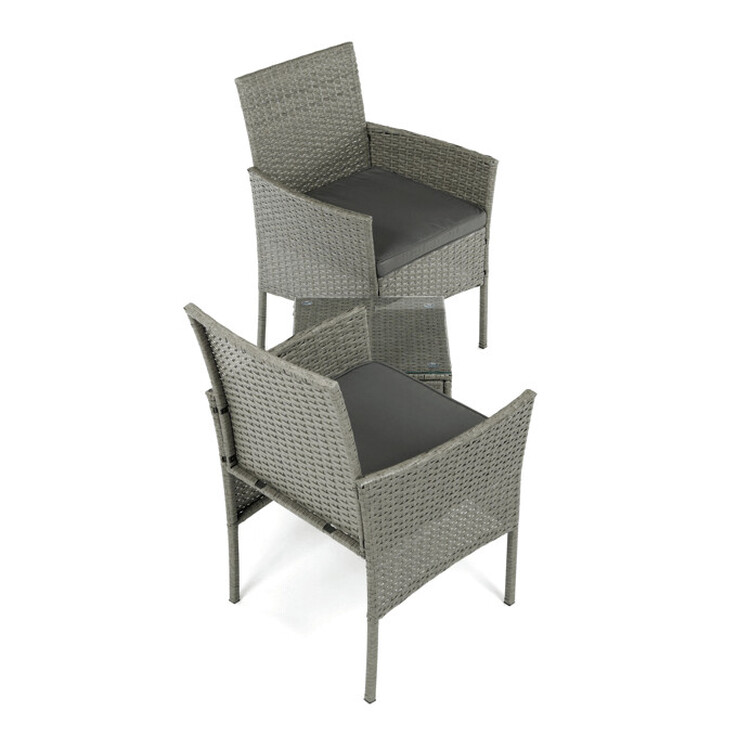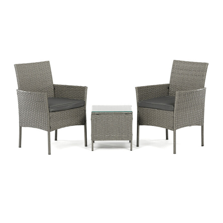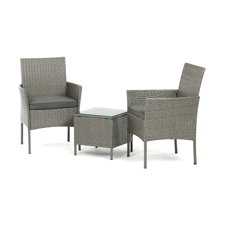Záhradný set 1+2 v šedom prevedení z umelého ratanu ponúka kombináciu štýlu a funkčnosti pre vonkajšie posedenie. Pevná kovová konštrukcia zaisťuje stabilitu a dlhú životnosť, zatiaľ čo odolný polyratan verne imituje prírodný materiál a ľahko sa udržuje. Súčasťou sú dve pohodlné kreslá s polstrovanými šedými látkovými sedákmi, ktoré prispievajú k pohodlnému posedeniu. Stolová doska je vyrobená z tvrdeného skla, ktoré je odolné voči poškriabaniu a ľahko sa čistí. Kompaktné rozmery a elegantný design umožňujú využitie na balkónoch aj menších terasách.