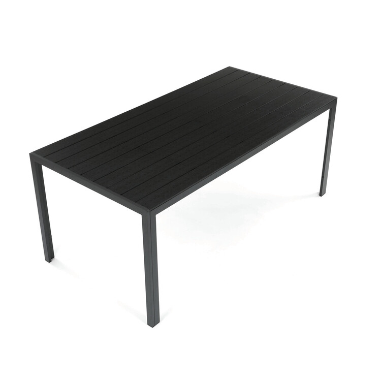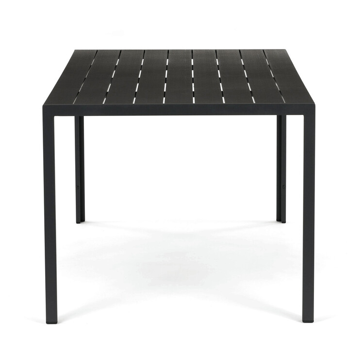 Záhradný stôl s rozmermi 180×90 cm kombinuje pevnú hliníkovú konštrukciu s vysoko odolnou doskou z polywoodu v šedom odtieni. Hliník je ľahký a zároveň stabilný materiál, ktorý zaisťuje dlhú životnosť a odolnosť voči poveternostným vplyvom. Polywoodová doska napodobňuje vzhľad dreva, pritom je ľahko udržiavateľná a odolná proti vlhkosti, praskaniu či vyblednutiu. Stôl je vhodný na vonkajšie použitie na terasy či záhrady, kde poskytuje dostatok priestoru pre pohodlné posedenie. Vďaka kombinácii materiálov ponúka stabilitu, praktickosť a moderný design v neutrálnej šedej farbe.