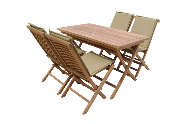 Záhradná zostava Birsbane je zložená z nerozkládacího stola a štyroch stoličiek s polstrovaním. Nábytok je ľahký a skladací, preto prípravou ani upratovaním nestrávite viac ako pár minút. Naviac Vám nezaberie takmer žiadne miesto. Záhradná zostava je vyrobená z Teaku.